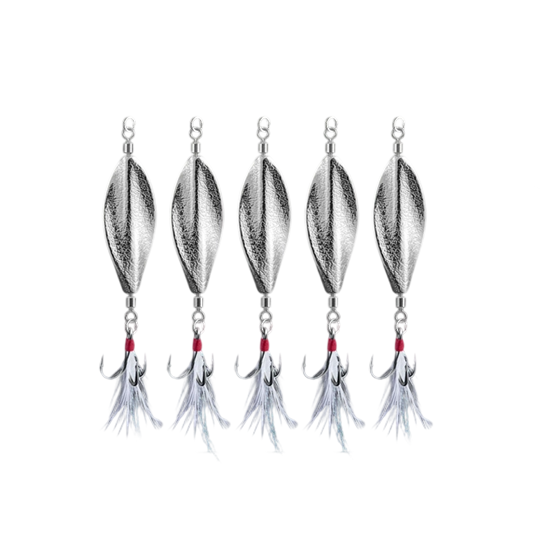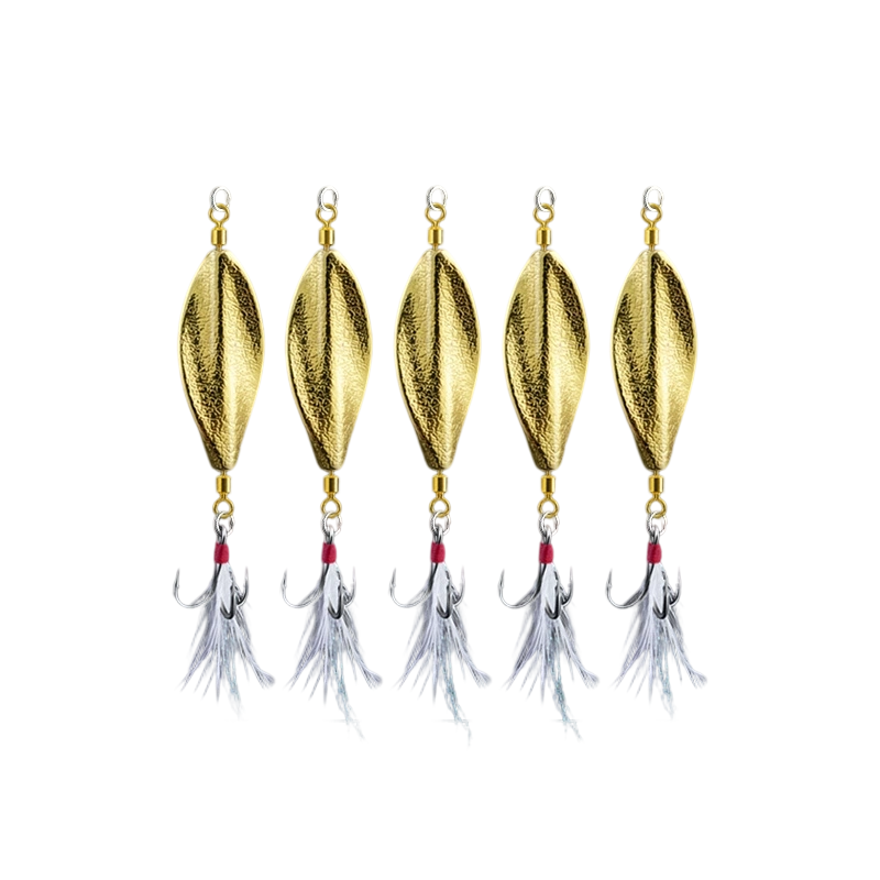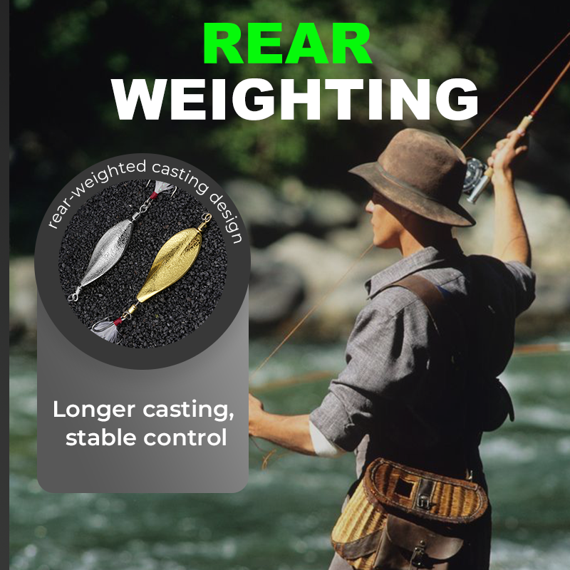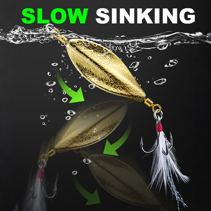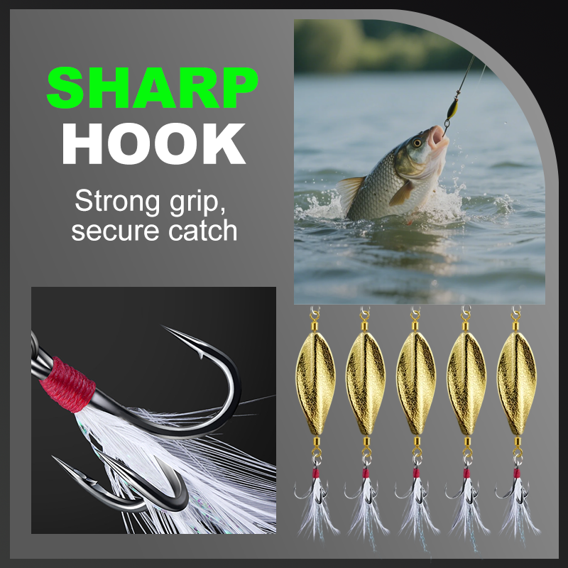SHARP FEATHER HOOK DESIGN – Equipped with a high-strength blood groove feather hook and flattened double eye, this spinnerbait ensures powerful pull resistance and secure fish retention. The sharp tip provides strong penetration, preventing escape and improving overall catch rate.