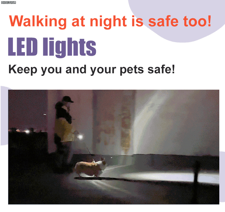 Retractable Dog Lead with Safety Light | Escape-Proof Brake Lock & 360° Visibility | Ideal for Evening Walks in Rainy Weather