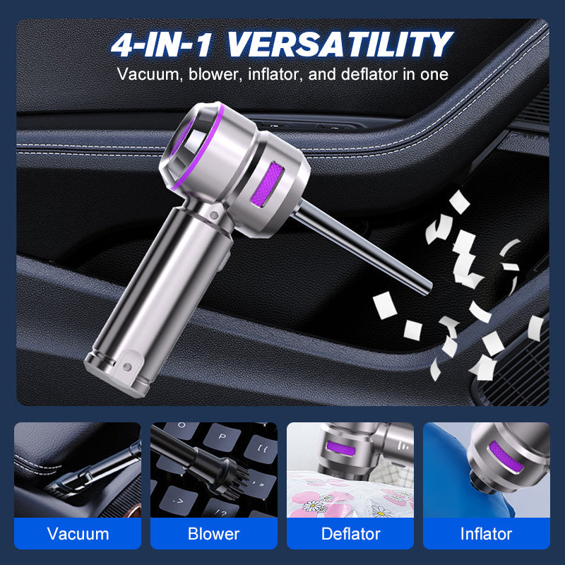 VERSATILE 4-IN-1 FUNCTIONALITY: This is more than just a vacuum. It seamlessly integrates four functions: a powerful vacuum for dirt, a strong blower for dusting, an inflator for items like air mattresses and balloons, and a deflator for vacuum storage bags. It's the perfect all-in-one tool for your car, home, and outdoor needs.