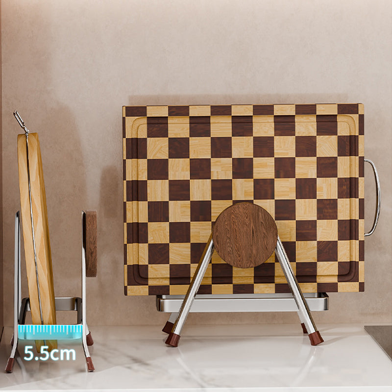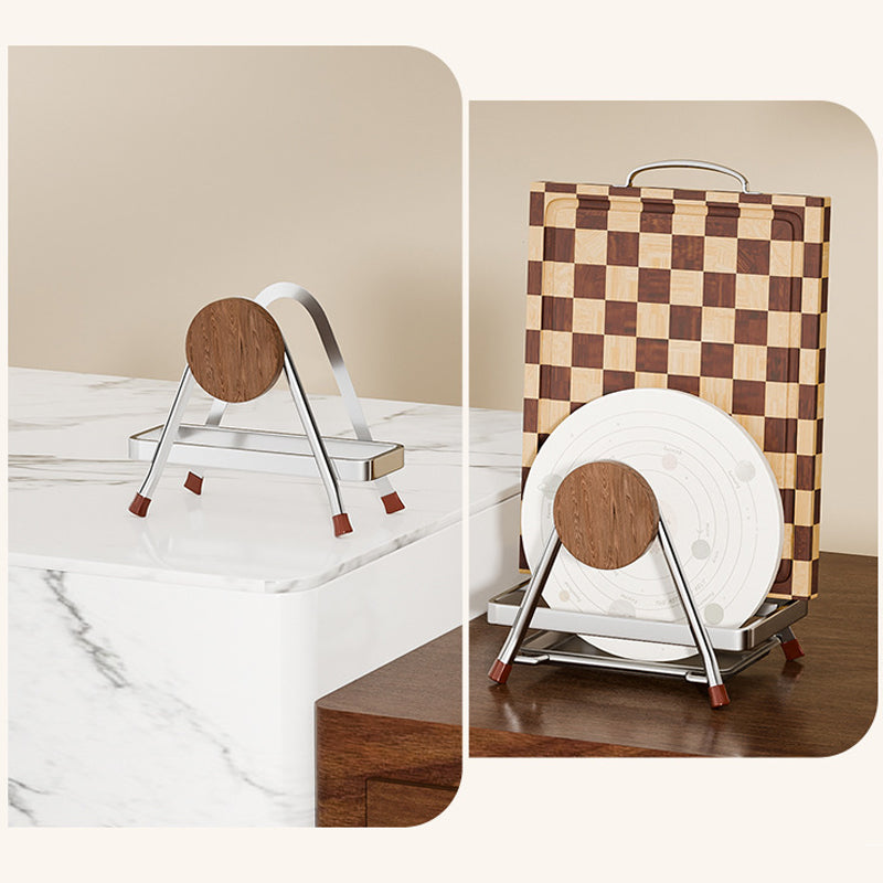 PREMIUM MATERIALS FOR LASTING DURABILITY - Crafted from thick stainless steel and select wood, this cutting board rack resists rust, corrosion, and deformation, ensuring long-lasting strength. It’s designed to withstand daily use while keeping your kitchen organized.