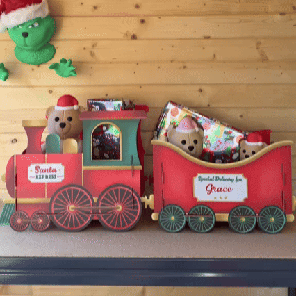 Say goodbye to boring gift boxes and hello to Santa’s Gift Train — a whimsical gingerbread-style Christmas train that’s built to carry your family’s joy. With roomy cars designed to hold presents, candy, or plush toys.