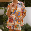 Printed Short Sleeve Shirt & Elastic Waist Shorts Set