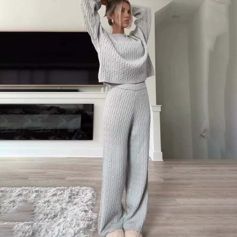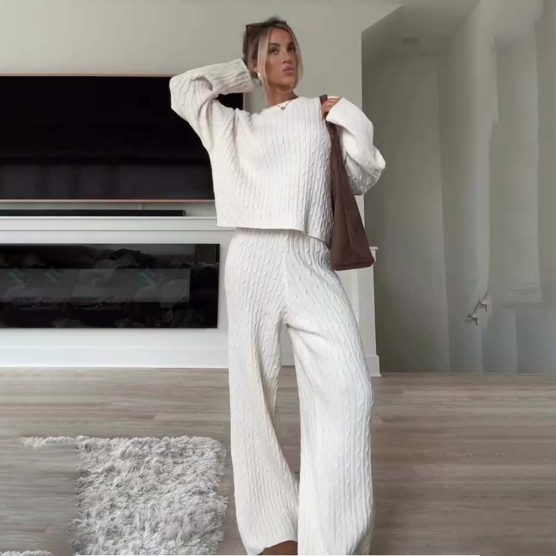 Package Includes: 1 * Women's Knit Pullover & Wide Leg Pants Sweater 2-Piece Set