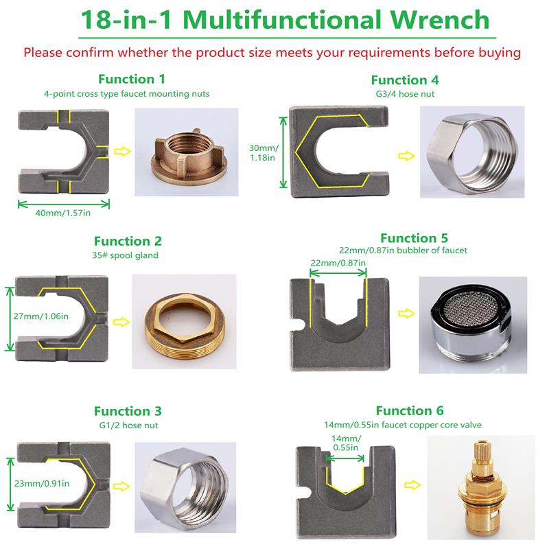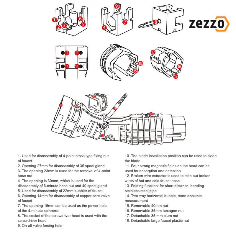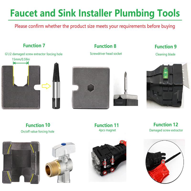 - Package Includes: 1 x Zezzo 18 in 1 faucet and sinks installer tool